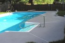 This cracked and pitted pool deck needed a decorative non-skid finish. After repairing the cracks and pits with a FlexKrete mixture, a coat of FlexKrete was applied with a broadcast application of blue-gray quarts and a topcoat of our FlexSealer 1000.